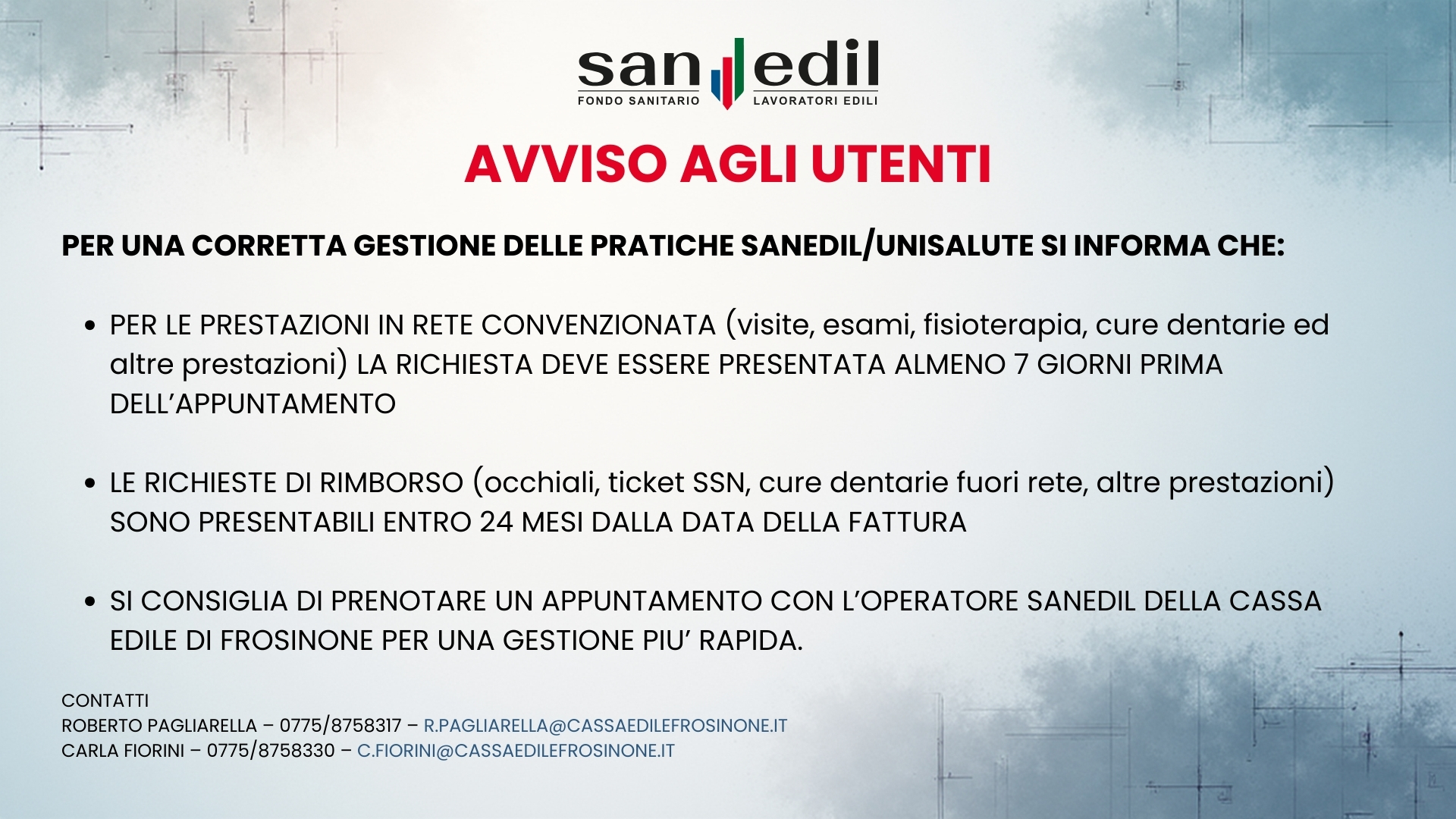 Gestione pratiche SANEDIL – Prestazioni in rete e rimborso Si informano tutti gli utenti che, al fine di garantire una corretta gestione delle pratiche e il buon funzionamento del servizio, …