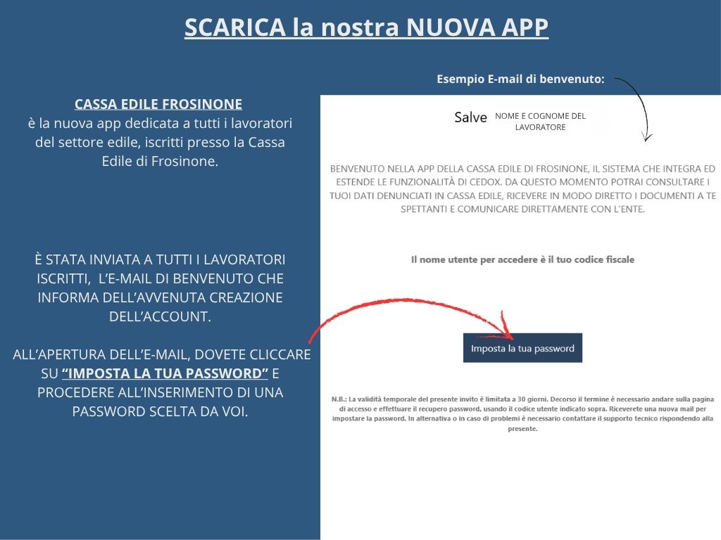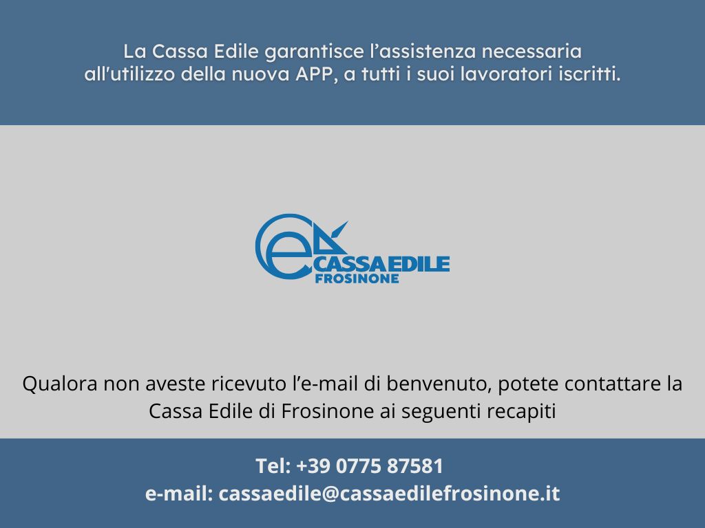 Qualora non aveste ricevuto l’e-mail di benvenuto, potete contattare gli Uffici della Cassa Edile di Frosinone